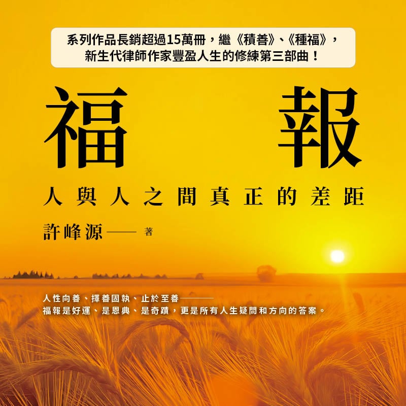 在一位曾經與律師聯繫演講的年輕老師突然因病過世後,她的家人想購買新書《積善》捐贈學校的書箱及圖書室。許峰源在知悉震驚之餘,也起心動念,把其他系列作品都安排為書箱贈送,每個書箱上都有這位老師的名字,讓全校--包括未來的孩子都能好好紀念。