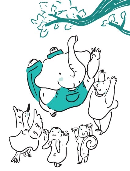 大象不適合爬樹,甚至他在故事裡還被天牛建議去海裡游泳。直到故事結束,他都沒有發現,自己是草原中的國王。