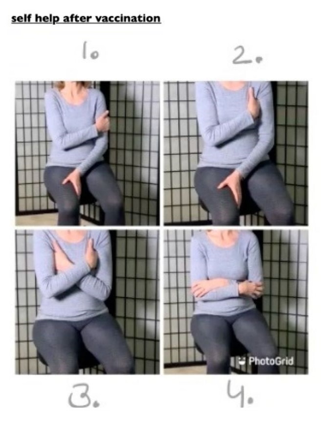 在施打疫苗前,先讓自己放輕鬆:放鬆你的肩膀,讓你的思緒自由的流動。