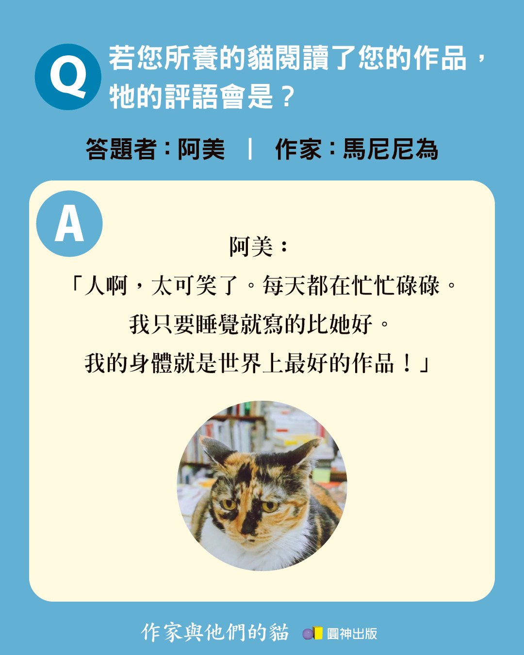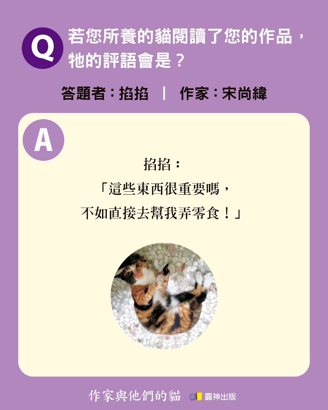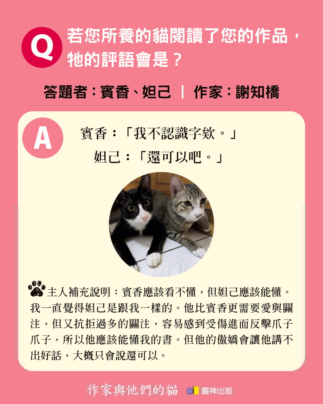 Q1.若您所養的貓閱讀了您的作品,牠的評語會是?