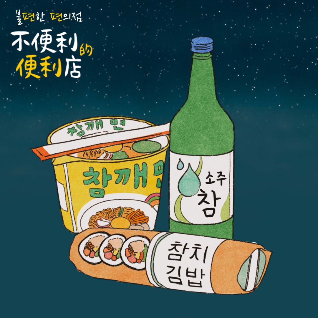 *在書中,這是由芝麻拉麵(참깨라면)、鮪魚飯卷(참치김밥)、真露燒酒(참이슬)所組成的「嗆嗆嗆(참참참)」組合。便利店的常客認為:「唯有那個組合,能夠讓新年這個鬱悶、一成不變的自己獲得安慰。」