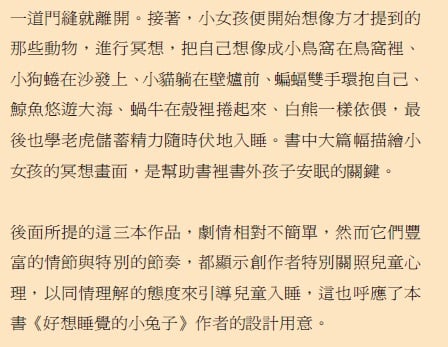 《好想睡覺的小兔子》譯者、也是兒童文學作家幸佳慧,很喜歡這本書。面對整本充滿催眠暗示的故事,她不僅翻譯翻到得猛灌咖啡,還特地擺出一種「現在很多囡仔身軀想欲睏、需要睏,毋溝擱想袂玩、精神熊嗨,結果睏昧去啦。」的表演方式,來吸引讀者的目光。