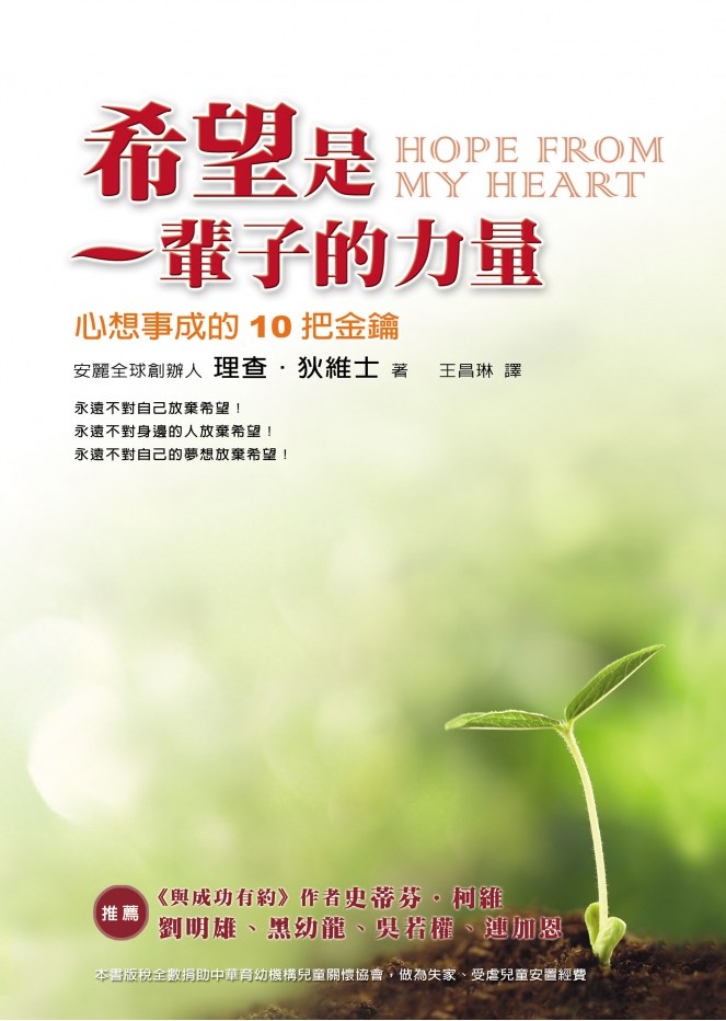 為了替我的「終極上線」──安麗公司的創辦人──理查.狄維士先生這本《希望是一輩子的力量》寫序,我重讀了6年前讀過的原文版《Hope From My Heart》。恍如一股清流,滌淨了近日充斥於報章、雜誌、電視、網路的各種油膩與污穢。