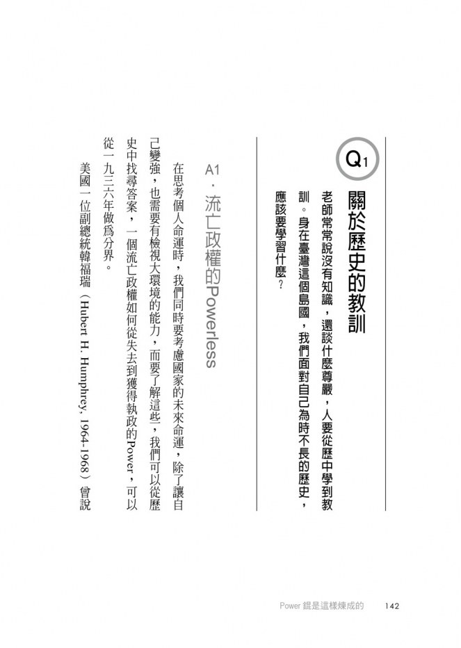本書以此次挫敗為起點,回顧他生命中的關鍵時刻。他深深醒悟,力量絕非憑空得來,人生如果沒有強度,怎麼會有力量?正視失敗、超越痛苦,才能讓自己真正的強大起來。