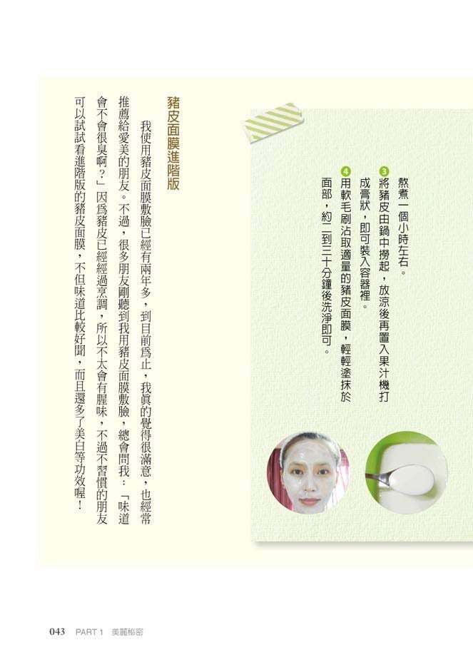 我想藉由這本書告訴大家:美魔女並非天生麗質,後天的努力才是關鍵!書中,我將告訴大家許多省錢卻有效的DIY保養品做法、從頭到腳的窈窕美體運動、不為人知的私房美顏聖品,以及獨到的健康管理原則,希望人人都能成為令人稱羨的美魔女!