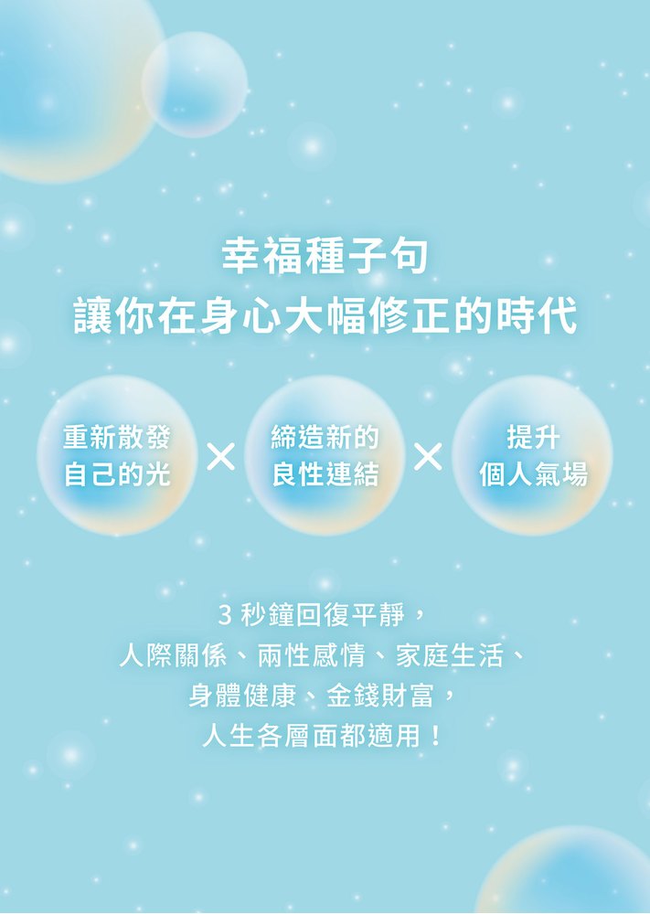 如果,你覺得感受不到幸福、負能量爆棚,「幸福種子句」將為你帶來你想要的幸福!