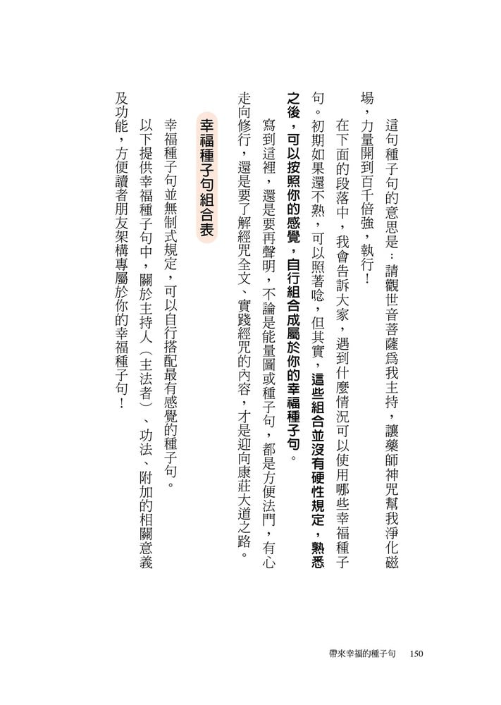 舒眠的種子句、吸引財富的種子句、開智慧心安定的種子句、實現願望的種子句、健康祈福的種子句……,從療癒身心到許願顯化,全方位照顧你的身心靈。