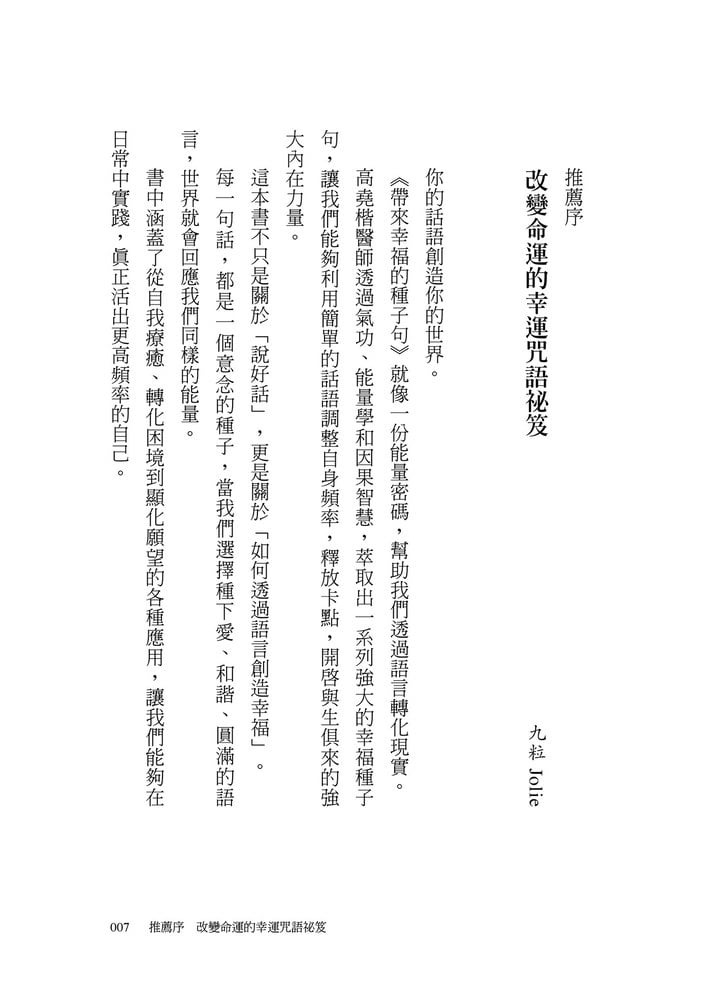 【推薦序】 改變命運的幸運咒語祕笈   九粒Jolie