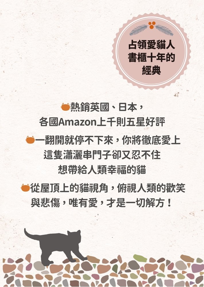 - 一翻開就停不下來,你將徹底愛上這隻瀟灑串門子卻又忍不住想帶給人類幸福的貓