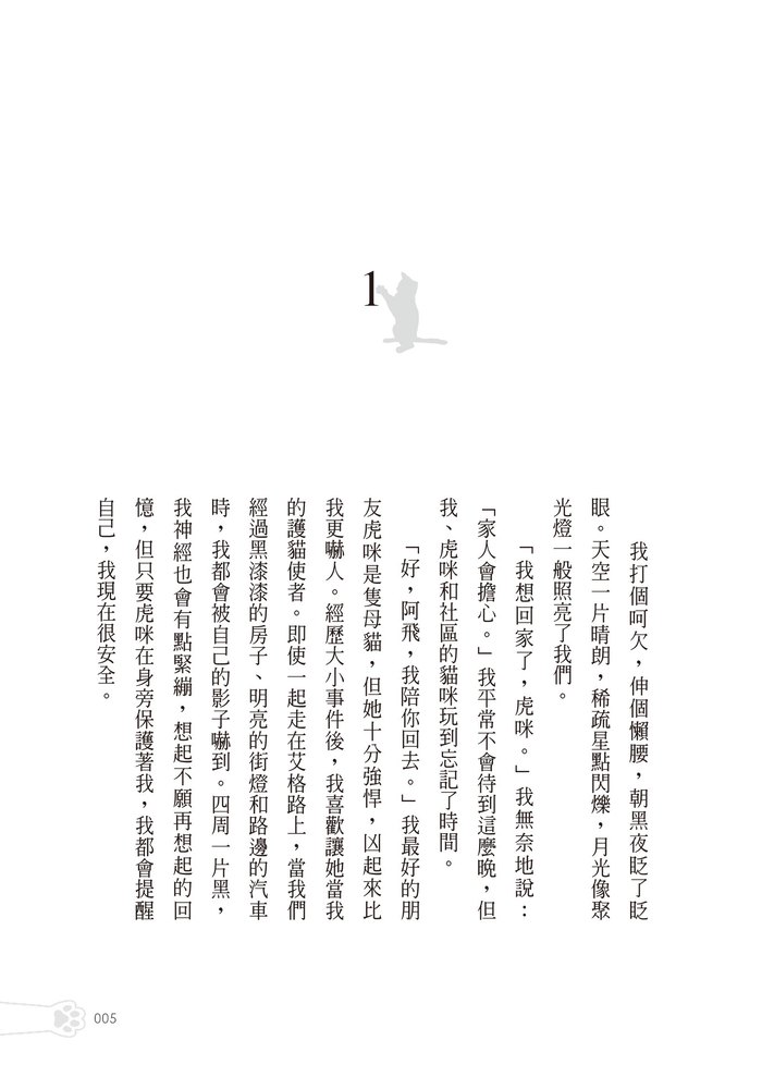 ♥ 身為資深貓奴,這書我毫不猶豫給五顆星!我一向愛懸疑緊張類,沒想到一隻貓的日常也能讓我翻頁翻到欲罷不能!阿飛貓雖不會破案,但他的冒險一樣精采,還會讓你想到家裡那隻也愛亂跑的主子。總之,這是適合你窩沙發、貓咪蹭你腿時慢慢讀的療癒系故事。謝天謝地這世界有阿飛貓!他要是來我家門口蹲,我一定立刻收編!