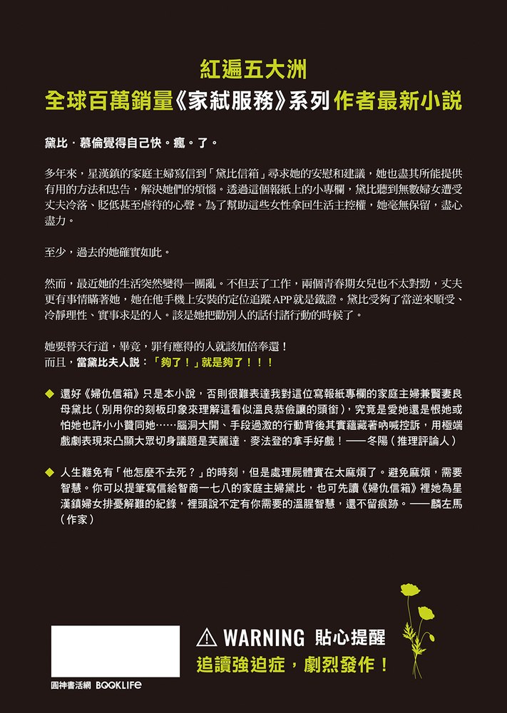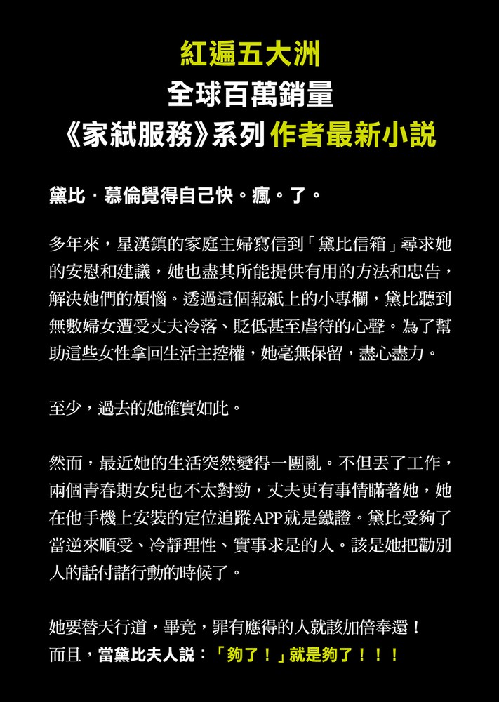 正要轉身回廚房時,我又停下腳步,因為瞥見窗外有別的動靜。是我的鄰居貝特.卡森。只見他走上我們兩家之間的車道。說是用走的,但看起來更像用跺的,一步一步朝著我們的前門逼近,再過一下就會開始大力敲門。