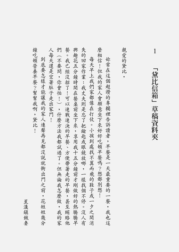 我又吃了一口高纖玉米片,然後拿起餐巾紙輕按嘴巴。我比較是那種穿T恤和瑜伽褲的媽媽,所以看到我穿洋裝又化了全妝,她很驚訝。我甚至特地把頭髮吹乾,不像平常綁成馬尾讓它自然乾。