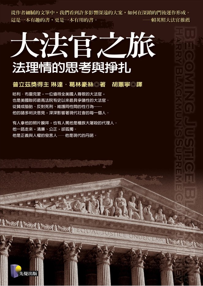 美國聯邦最高法院高門大屋,重門深鎖,大法官內部的討論和評議的紀錄從不對外公開,外人很難窺探大法官「成長」的歷程。好在布雷克蒙一向有記事的習慣。他生前留下的各種資料,包括童年的日記、友人往來的信札、法院內部討論的筆記、判決書草案的手稿……,林林總總,有五十三萬多件,總共裝了一千五百八十五箱;加上退休之後,他以前的助理,耶魯大學法學院院長哈諾德·洪柱.柯(Harold Hongju Koh)幫他做的口述歷史,整整錄了三十八個小時。一九九七年五月,他把這些資料全部送給美國國會圖書館,講明過世後五年可以對外公開。《大法官之旅》的作者葛林豪絲(Linda Greenhouse)是《紐約時報》的記者,一九七八年開始採訪聯邦最高法院的新聞,因表現傑出,一九九八年獲普立茲獎。二○○四年一月,在那些資料對外公開前的兩個月,葛林豪絲獲得布雷克蒙大法官家屬的同意,得以先睹為快。她對聯邦最高法院本來就有研究,這一批珍貴的史料,讓她對布雷克蒙大法官有更深刻的了解。《大法官之旅》就是她二十多年的採訪心得,加上詳細研究這批第一手史料的結晶。從作者細膩的文筆中,我們看到布雷克蒙如何的「成長」,看到他和柏格之間的友誼如何的起伏變化,也看到許多影響深遠的大案,如何在深鎖的門後運作形成。這是一本有趣的書,更是一本有用的書。