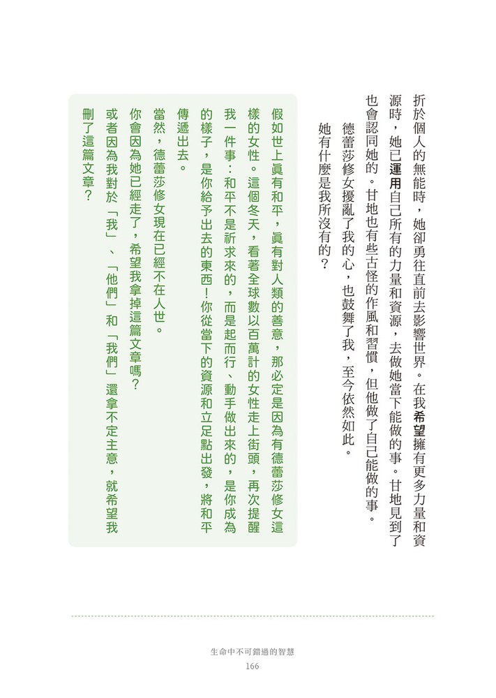 「人只要經過此生,必會不知不覺留下與帶走一些東西。」