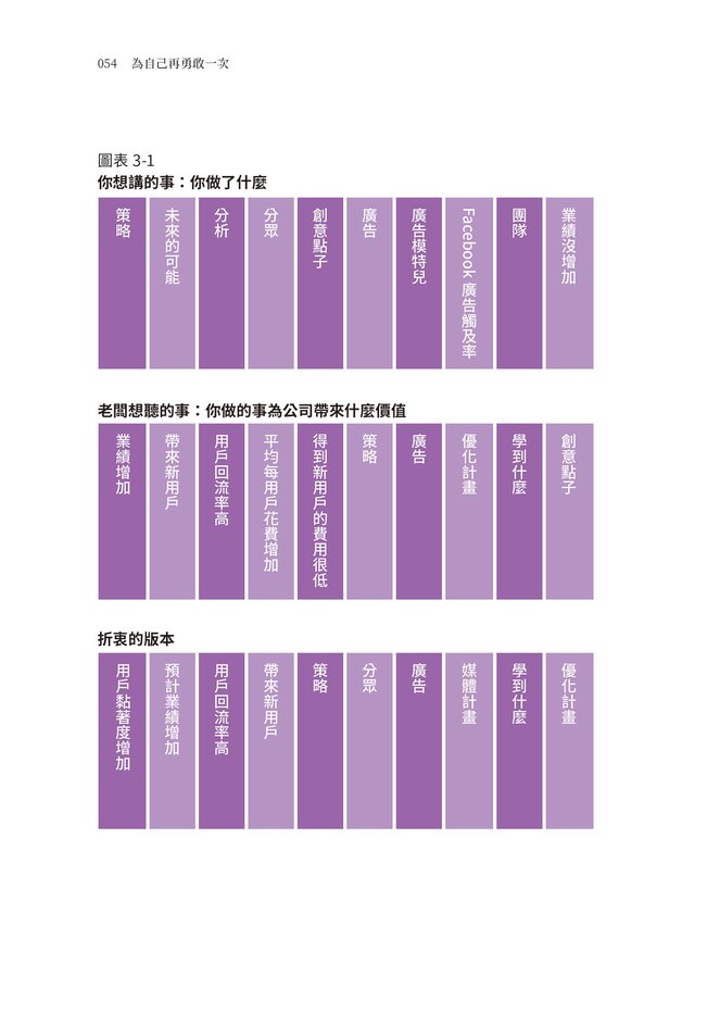 讓老闆聽進去的簡報/跟老闆要錢的藝術/用新創募資簡報法說服老闆/用創業家募資的方式做計畫/成為跟老闆對頻的愛將/給老闆鼓勵