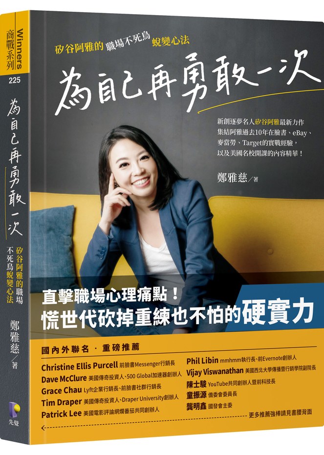 從台灣小記者,到臉書電商產品經理,勇闖矽谷的阿雅在職涯顛峰再度展現砍掉重練的勇氣,離開令人稱羨的工作,於矽谷創辦人工智慧租衣新創公司Taelor。阿雅說:「與其一直提當年勇,炫耀我是如何從台灣小記者,到矽谷巨頭當管理階層,倒不如砍掉重練。我想再拚一次。而第二次的再出發,絕不是真的『從零開始』。」