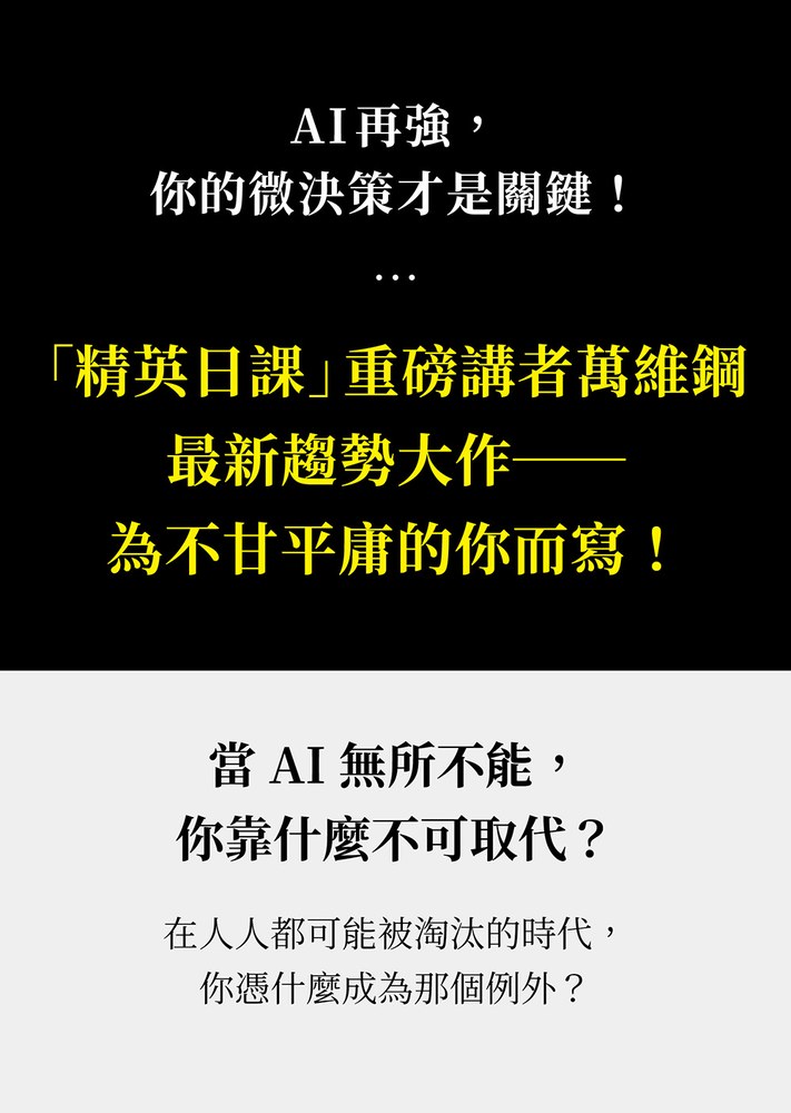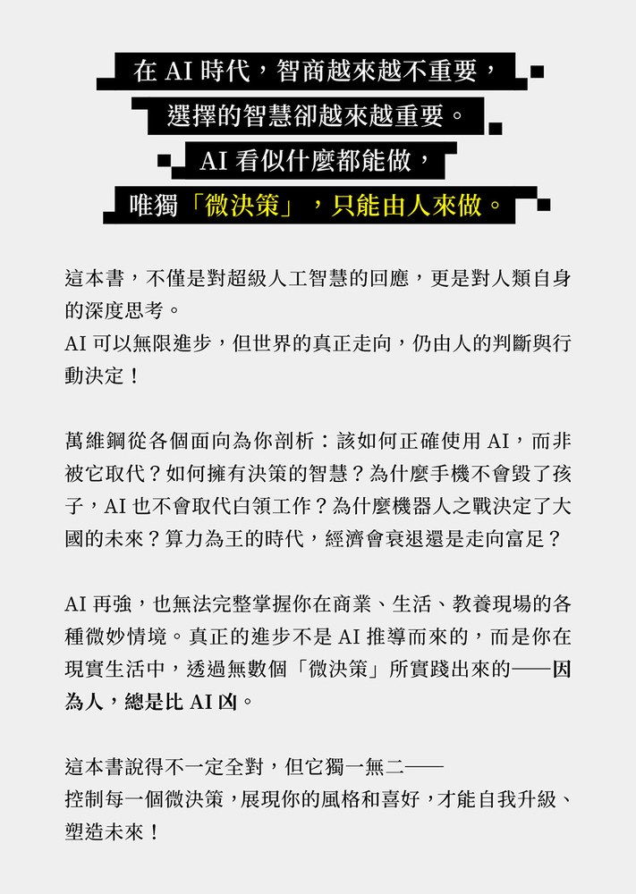 你就是你的微決策。其實生活中有無數個微決策的機會擺在我們面前,只是以前我們沒有能力、沒有能量、沒有心思去做。AI會讓我們做事更像人。