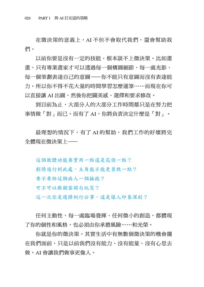 你的每一個決策,不管多麼微小,都是對世界的改變。AI總可以建議。但只要你在意,就必須干預。你必須確保每一個微決策都是你的決策。我們工作的價值就體現在每天無數個微決策之中。