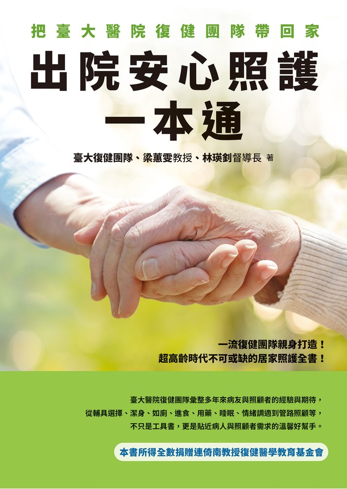 「出院準備」始於入院以後,但不應結束於病人踏出醫院之際。衷心希望這本結合臺大復健團隊眾人之力,提供最實用、最切合病人和照顧者需求的照護書,能成為所有出院返家休養者及家屬可隨時複習、參閱的好幫手。