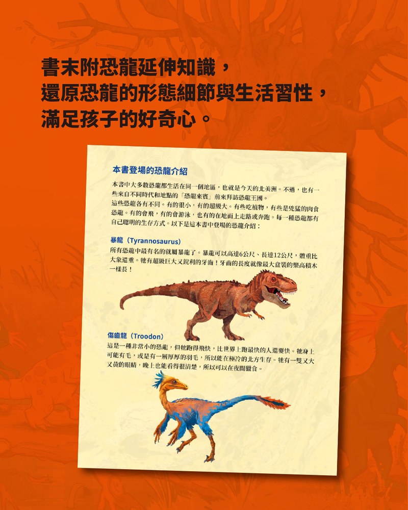 ★隨書贈恐龍著色畫!故事幽默又充滿驚奇,融合恐龍、冒險、成長、友誼、勇氣、愛等元素,不論親子共讀或孩子自主閱讀,都能樂在其中!