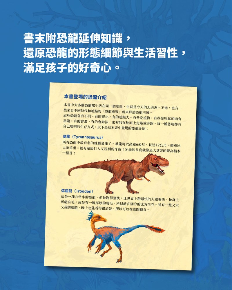 ★書末附恐龍延伸知識,還原恐龍的形態細節與生活習性,滿足孩子的好奇心。