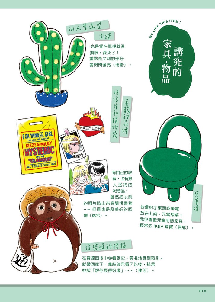 每篇故事都包含人物設定、房間格局&布置、喜愛的家具雜貨、外出穿搭、所處街區介紹,以及描繪雙人生活的短篇漫畫,沉浸式體驗不同於觀光客視角的東京日常!