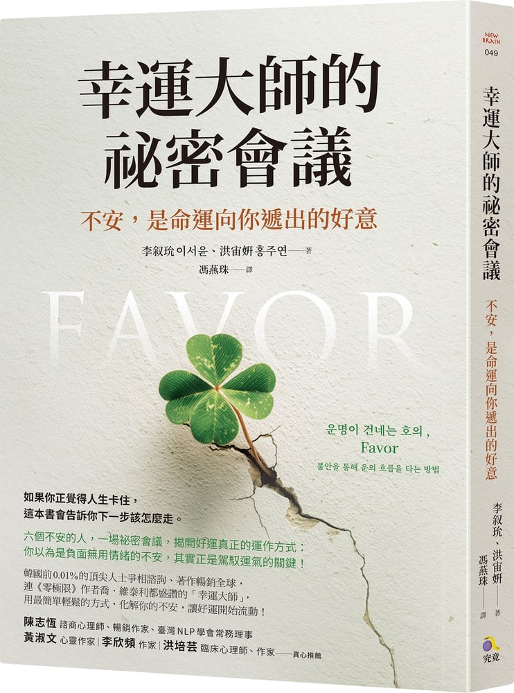 《幸運大師的祕密會議》對我而言,不只是一本教你如何創造好運的書,真正關心的是人在混亂之中,如何重新把自己安放回生命裡。願這本書陪伴每一位正處在不安之中的讀者,慢慢看見與理解,不安不是壞事,只要透徹理解它,就是轉機來臨的時刻,而好運往往萌芽在最難受的地方。