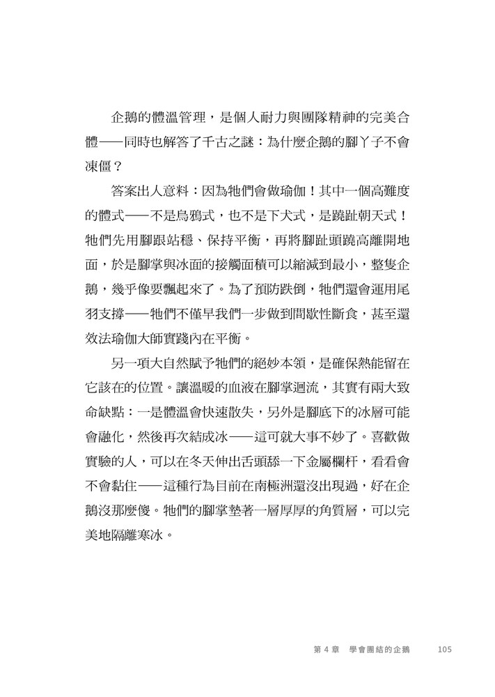 之後在演講、YouTube頻道或電視節目的採訪中,他經常說起企鵝給他的這個啟發,對無數人的人生和職涯,帶來極大的幫助,紛紛敲碗,期待他能寫出這個故事。於是他為讀者規畫了七堂不同角度的企鵝觀察課,並且邀請一流的企鵝攝影專家合作,期待用激勵的言語、美麗的畫面提醒大家: