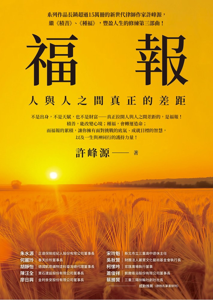 我必須對自己誠實,必須對所有信任我的讀者誠實,所以老實地將書取名為:《福報:人與人之間真正的差距》。