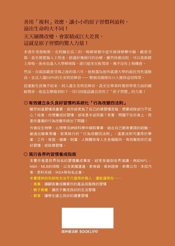 從運動生涯幾乎結束,到入選全美明星陣容,甚至在畢業時獲得學業方面的總統獎章,他是怎麼做到的?一切只因他認識且善用了「原子習慣」的力量!